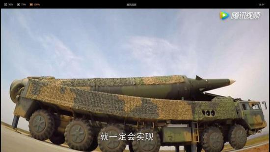 比较罕见的东风-26型导弹露出战斗部的画面。