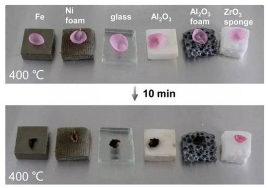 这种材料可以被广泛用于航空航天、电子信息、生物工程等领域,其中其电磁屏蔽的特性可以被用来制造潜艇的外壳的填充物,以此来降低潜艇的地磁效应,增加潜艇的隐身性。另外,其传统耐高温的特性可以被用来制造航空发动机材料,从而降低隐身飞机尾部红外信号,增加隐身性,不过这项应用还要等一段时间。中国的科研团队对海绵陶瓷的耐高温特性进行了实验,实验团队选取了7种不同的陶瓷材料成功制成“海绵”,然后取7毫米厚的各种材料若干,在其表面分别放置7片花瓣,然后用火从底部加热。实验证明,一种叫做氧化锆的陶瓷海绵性能最好,其他材料的上面的花瓣早早就燃烧殆尽,而氧化锆的陶瓷海绵上的花瓣依旧娇艳动人,可见这种材料的优异性能。