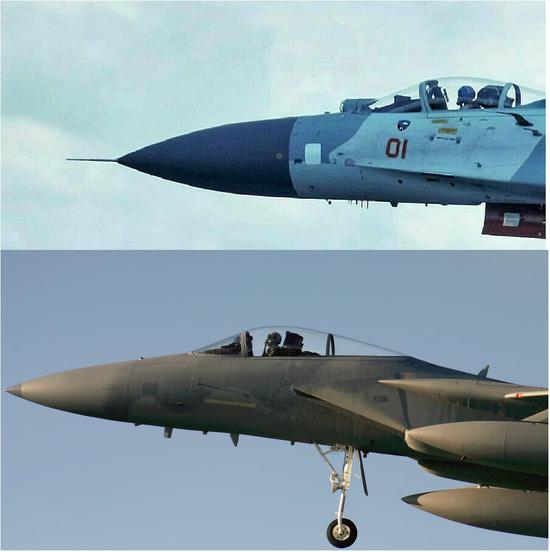 从设计师的选择来看,F15设计师可以通吃,依靠无敌的发动机和超强材料和设备,飞机做的很轻,而苏27战斗机设计师只能做取舍,保证机头雷达尺寸,座舱保证一定视野,不和美国人硬拼。