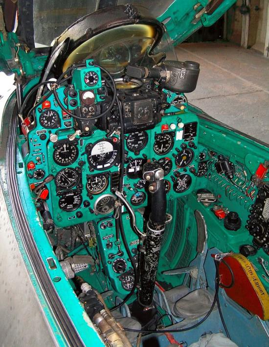 原版米格21的座舱,狭小凌乱,外加多层黄色玻璃,让人看不见