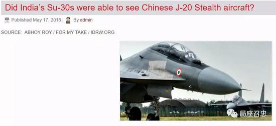 印度IDRW网站17日刊文称:印度空军称印度苏-30战机雷达追踪到了中国的歼-20战机,还称印度战机仅用常规雷达就可以发现歼-20!