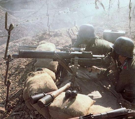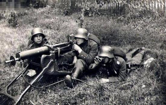 马克沁重机枪在第一次世界大战期间被首次大规模应用,当时德军每个步兵团就配有6挺马克沁重机枪,整个步兵师则配备72挺重机枪数量。战争爆发的时候,整个德国陆军装备马克沁重机枪超过了13000挺,战争后期德军将重机枪配置到每个步兵营。脑洞大开的德国人为了把这些机枪的作用开发到极致,利用“超越射击法”,就像是割麦子的镰刀,一茬一茬的收割人命。