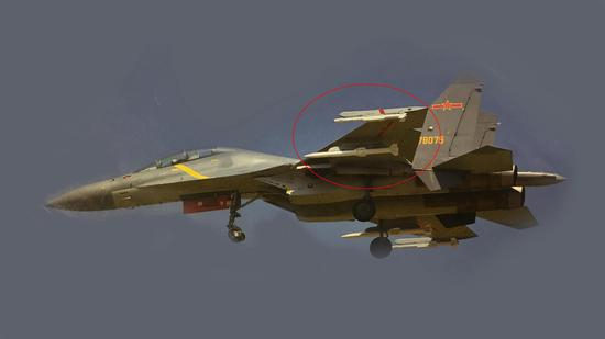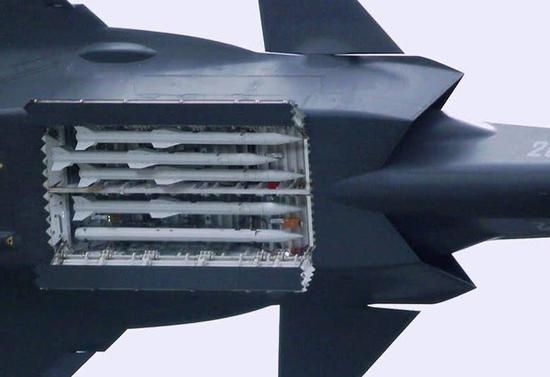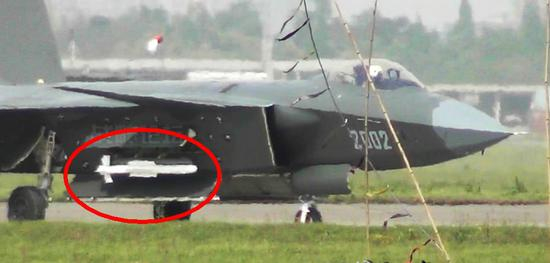 图片:PL-10导弹挂载在歼-20的侧面弹仓。