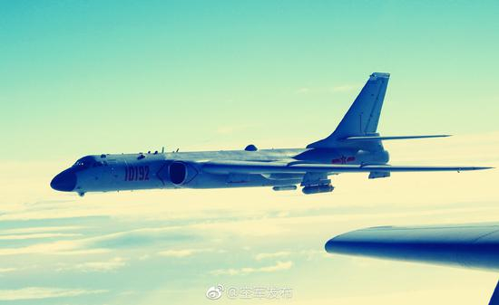 中国空军官方发布的轰-6K凌晨绕岛巡航美照。