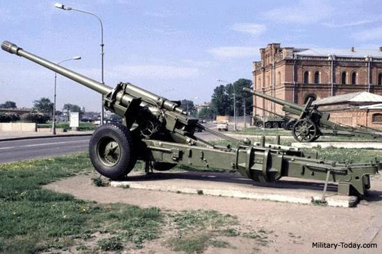 这是中国的59-1型130毫米加农炮。众所周知,加农炮是发射仰角较小、弹道低平,可直瞄射击的火炮,其与身管较短,弹道比较弯曲的榴弹炮有着明显差别。