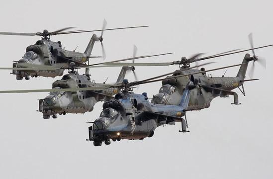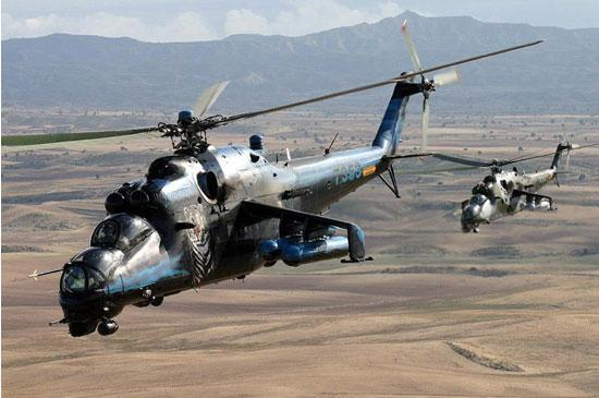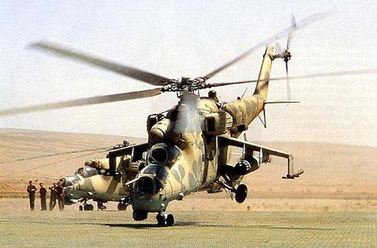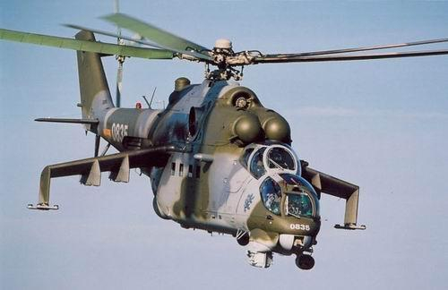 米-24是苏米里设计局于上世纪六十年代末研制的一款双发单旋翼的中型多用途武装直升机,最大起飞重量达到了12吨。该机于1969年完成首飞,1971年正式定型,1972年完成所有试飞正式进入批量生产,1973年开始装备苏军,该机也是世界上第一代的武装直升机。由于造价低廉,截止到2014年,该机一共生产了近2000架,出口了30多个国家和地区,至今仍有1000多架在俄罗斯军队中服役。