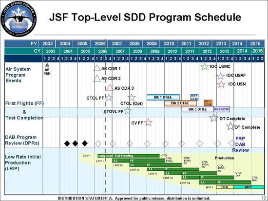 F-35是在原型机试飞完毕,开始小批量产后,由军方与厂家联合组成的团队进行整合测试,直到初始服役(IOC)后停止。由于F-35有A、B、C三种机型用三种不同版本的核心航电服役,因此测试工作异常繁复,也遭致不少困难