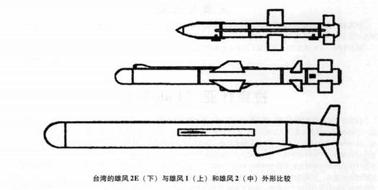 ▲雄风2E与雄风1、雄风2导弹的外形比较,可以看出雄风2与雄风2E就是两种不同的导弹