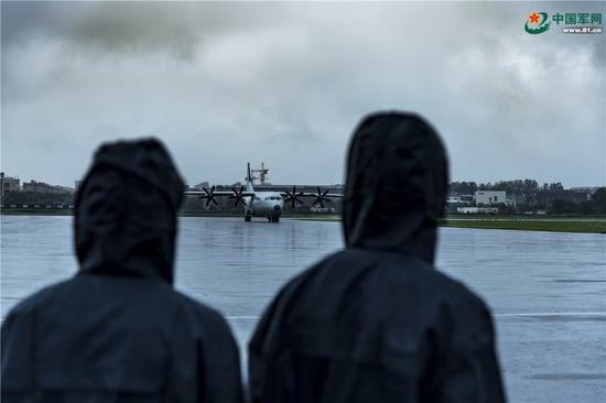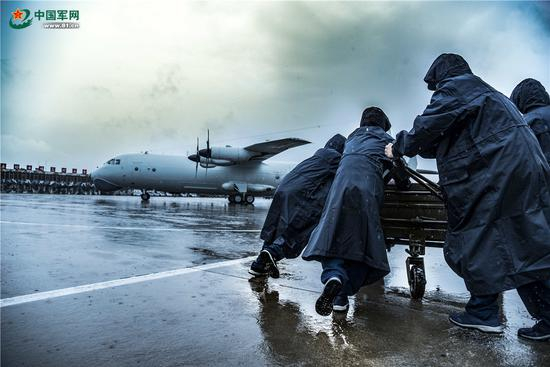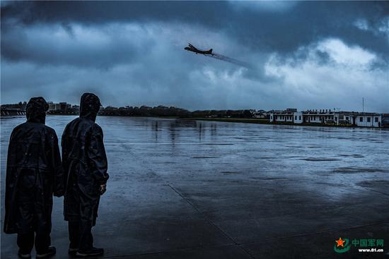运-8反潜机冒雨升空。