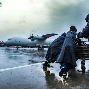 地勤人员对运-8反潜机进行起飞前准备。
