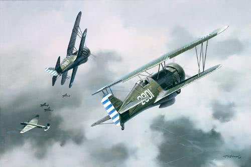 “作战方案”都拟定好了,那就出发吧!中间抽签、改装飞机就不说了,反正就是将一架霍克III战斗机加装了4枚炸弹,然后就上路了!空军还出动了大量战斗机护航!