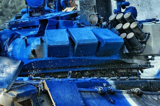 当然了,能把最普通的公版T-72B3飚出如此成绩来,哈萨克斯坦车组的老司机自然也是采取了一些非常规的骚操作。看过坦克两项竞速角逐的观众都知道,在阿拉比诺这片竞技场上,向来是普通装甲车当坦克使,坦克当道具车使的。什么安全操作、慢等三秒,在这里通通都不存在。你能看到的,只有被履带扬起的漫天狂沙,被40多吨的自重炸开的大号水花,以及因为粗暴驾驶所造成的各种奇葩故障。