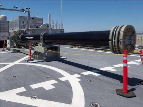 其次是电磁轨道炮,电磁轨道炮是美国海军在2005年启动的新概念武器研发项目,也是目前美国海军新型武器重要的研究项目之一。初步计划这种电磁轨道炮使用军舰的电力作为能量源,然后再通过强电磁场高速驱动弹丸,最后以5.9马赫至7.4马赫的高超音速攻击敌方目标。等于说类似于我们一般意义上的舰载炮,只不过速度更加快了。据消息人士透露,现在的美国海军电磁轨道炮已进行了原型概念试验,并且取得了一些成功,其发射初速达到32兆焦耳,而且射程能够达到110英里左右。对于现在的美军来说,需要解决的事重复脉冲功率、轨道炮射速、炮管技术成熟度和高速弹丸等子系统优化问题,只有把这些问题一一解决了,才可能尽早实现电磁轨道炮的上舰。