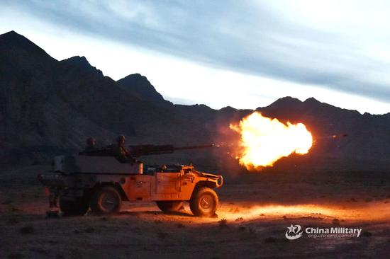 图片:昆仑山下猛烈开火的PCP-001型自行迫击炮。