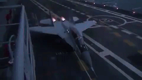 昏暗的海面上,一艘艨艟巨舰缓缓而行。不算宽敞的甲板上,一架米格-29K战斗机小心翼翼地滑行进入起飞位置,随即加力全开,喷出耀眼的火舌,猛地向前加速,右侧机翼几乎擦上了庞大的舰岛……