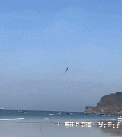 [动图]疑似中国空军歼-11战斗机超低空飞越海滩