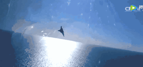 [动图]歼-15舰载机超低空掠海飞行,距海面不到30米