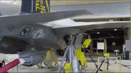 值得注意的是,美国国防部发布的KC-135加油机与F-35B的空空加油照片清楚显示了这些战斗机在机腹挂载了GAU-22 25毫米机炮炮舱,这种隐身外挂式机炮吊舱在2017年才首次进行飞行试射,这也是该吊舱的首次作战部署。