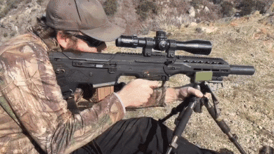 美国的沙漠科技公司在2014年推出了一种叫做MDR的无托步枪。该枪采用了一种很有意思的抛壳方式:抛壳口在弹膛右侧,有一个类似抛壳口防尘盖的的机构来引导弹壳向右前方抛出。