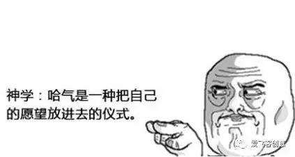 在日常生活中,掷骰子、扔飞镖甚至打开考卷等之前都要哈一口气,在这类动作都是有意无意中模仿了一些仪式的动作。哈气这个动作似乎可以强调行为的目的,加强仪式的作用。再追根溯源,从神话传说中也可以看到哈气的影子。东方女娲和西方上帝以自己的模样捏土造人,最后都要哈一口气人才有灵性变为真正的人。