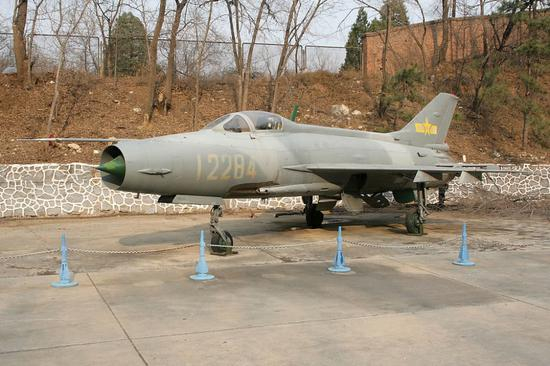 图片:学员旅装备的歼-7II战斗机,三片式前风挡很复古。这是给学员放单飞的飞机。