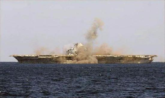 在2005年,美国海军组织了一次击沉退役航母的实验,作为靶舰的是排水量8.4万吨的小鹰级“美国”号航母,美军动用各种先进武器,对这艘航母实施了一系列空中、水面及水下的实弹攻击试验。在饱经25天的狂轰滥炸之后,美国号才缓缓沉入大西洋。不过,美国号这么”抗揍“,主要原因是舰上没有燃油弹药的缘故。在实战中,航母被击中以后,很可能引发燃油的混合气体爆炸,或者弹药的殉爆,这才是航母被击沉的主要原因。