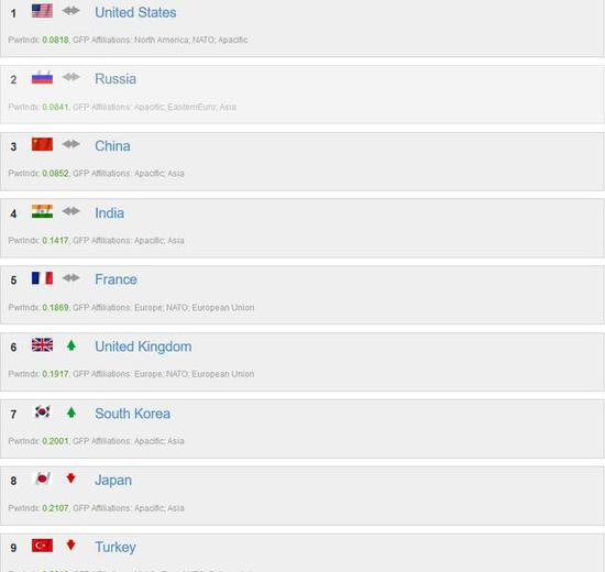 上面这份榜单是《全球火力指数2018》给出的火力指数排行,土耳其火力指数排在日本之后,但在德国之上。全球火力指数更加侧重于装备水平。综合两份榜单来看,土耳其的综合军事实力位列全球第九也是实至名归。不过在武器研发、装备数量等方面,土耳其和中国相去甚远。