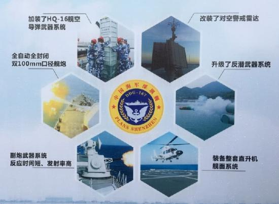 深圳舰作为90年代末的产物,服役至今已经不算先进舰艇,它的设计特点还保留了很多落后的痕迹,比如蒸汽轮机动力系统,比如仅有15昼夜的自持力,所以在2013年至2017年,深圳舰在海军4804厂进行了长达4年的中修核现代化改进。改进后的深圳舰焕然一新,作战能力更是成倍提高,虽然被网友戏称为“大号054A”,但其实深圳舰改进后的实力还是远超一票护卫舰的,即便是改进后的现代级驱逐舰也不是它的对手,完全对得起051B型这6000吨级的体量。