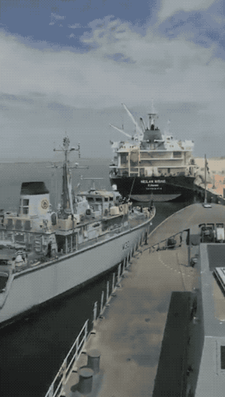 这段视频上,一艘60米长的扫雷舰战舰完美地以“侧方停车”的方式,停在一艘集装箱船和一艘驱逐舰之间的泊位上。相对于汽车的侧方停车,舰艇的难度不但是因为长度更大,而且海中没有刹车,只能凭借操舰者对舰艇动力、舵机的娴熟操纵技巧和空间的准确判断才能实现。这段视频在发布后,已经有超过4800次转发和20000次赞。