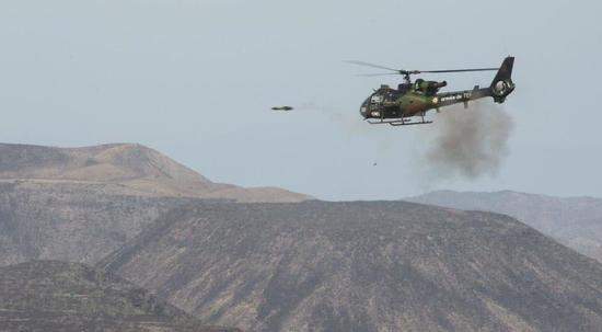图片:2017年1月,驻吉布提法军小羚羊发射霍特打靶