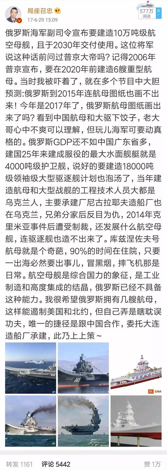 其实对于“库兹涅佐夫”号的命运,局座早已经看的透彻。