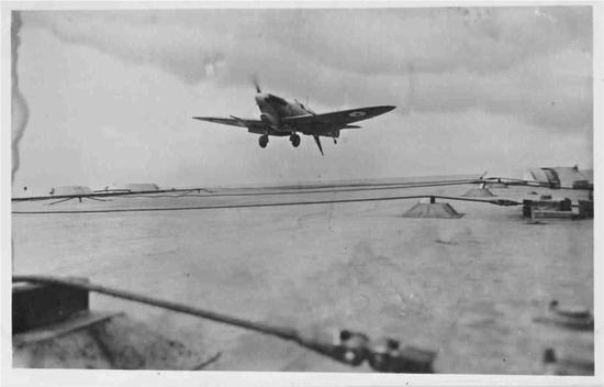 图片:从上到下依次是在航母上降落的“海飓风”、“海喷火”、“海黄蜂”。