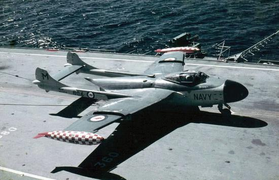 图片:“海吸血鬼”、“海毒液”、“海雌狐”是冷战时期英国皇家海军三款著名的舰载战斗机。