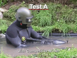 ▲M4卡宾枪的入水测试,瞬间炸膛