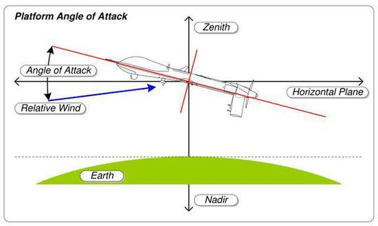 攻角是指飞机中轴线与飞机飞行速度矢量方向的夹角,是研究弹箭和飞行器空气动力的重要指标。迎角是指飞机的主翼翼弦与飞机的前进方向的夹角,是飞机机动力的重要参考指标。我们在玩一些空战游戏或者飞行模拟的时候看到飞机的HUD上有一个扁平状的小圆点和一个十字花。小圆点就是速度矢量方向,十字花就是飞机机头指向方向,二者的夹角就是攻角。