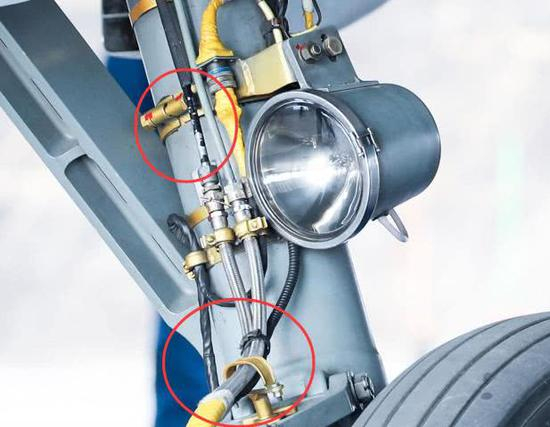 原因是,不能弯曲绑紧了,飞机降落时,强大的冲击之下,起落架支柱会上下大幅度浮动,假如支架和管路绑紧了,管路反而容易在支架附近遭受到巨大的弯曲载荷,过早开裂失效,现在这种设计,不是很好,但是也尽量约束了管路,不要过分乱动,造成事故,当然这种设计在更新一代的战斗机中,几乎消失不见,因为表皮磨损太大,经常需要检查更换。