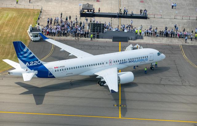 图为已经更名空客A220的庞巴迪CS300,来自加拿大的注册号和国旗是庞巴迪的最后印记。