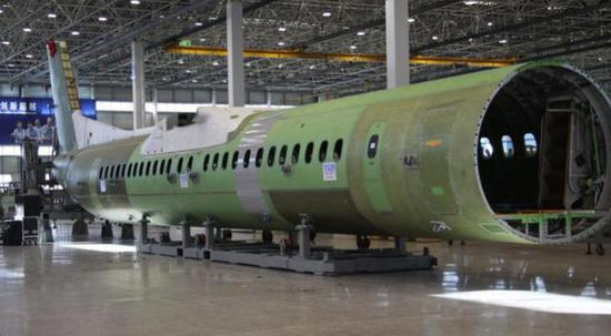 图为沈飞民机厂房内正在制造的Q400机身,中国和庞巴迪的合作显得更为低调且深入。