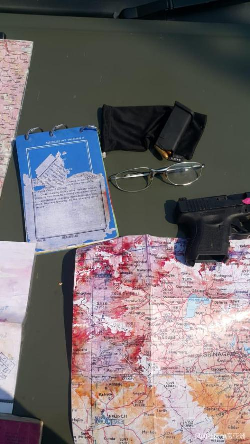 被俘印度飞行员身上的地图、手枪、眼镜(平光镜,应该是装饰品)