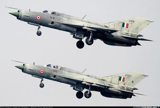 图片:印度最早引进的是米格-21F-13战斗机,和中国当年引进的型号一模一样。