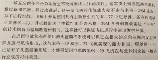 图片:《俄罗斯院士回忆航空半世纪》书中对为印度升级米格-21的回忆。