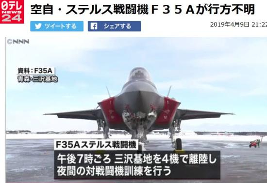 据日本航空自卫队公布,当地时间4月9日晚7时30分左右,一架F-35A战斗机在青森县附近海域从雷达上突然消失,至今未取得联络。第二天一早,日本方面确认在距海岸135公里处发现并打捞回了一段失踪战斗机的尾部残骸。至此,这架失踪F-35A已经确认坠毁,飞行员仍处于失踪状态。