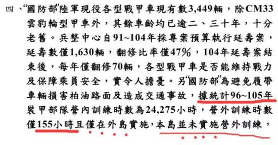 但随着陈水扁的上台,台军的建军计划发生了根本性变化,“捷豹专案”随之告吹,相关的预算全部变成了“阿帕奇”武装直升机,但“金龙营区”还是被保留了下来,现在是台军陆军机步269旅战车营的驻地。也是在阿扁上台后不久,台军陆军装甲兵的战斗力开始直线断崖式下降。从2007年开始,台军驻扎在本岛的所有坦克,竟然再也没有开出过自家营区过,哪怕是一次!
