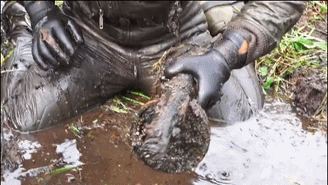 ▲俄罗斯挖土党在沼泽中挖出成箱炮弹