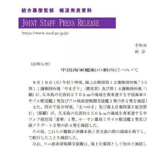 当天晚9时左右,中国海军航母辽宁舰,一艘052D型驱逐舰及两艘054A型护卫舰沿同样路线穿过宫古海峡进入太平洋,日本海自松雪号驱逐舰及P-3C反潜巡逻机对辽宁舰编队进行跟踪监视。日本防卫省称,这是日本海自首次拍摄到901型综合补给舰随舰队穿越宫古海峡。