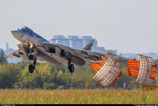 因此,苏-57降落时应该是在非常低速下完成的。速度低到已经可以放减速伞。