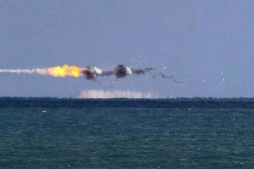 红旗-10导弹拦截鹰击83反舰导弹的瞬间。