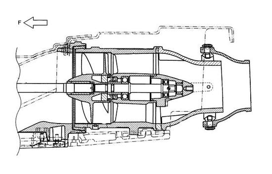 朝向涡流的核心,使液体的流速增加并且让压力降低。较低的压力会引发空化效应,产生的气泡会产生噪音,振动以及腐蚀螺旋桨的桨叶。许多的研究表明,当空化气泡在桨叶表面附近坍塌时,会产生空化效应损坏螺旋桨桨叶的一个破坏性因素,即向桨叶表面发射所谓的凹入微射流。这种液体射流可以产生高达1500米/秒的速度,并且能够损坏已知的最硬物质。而泵推系统即可避免这样的损坏。