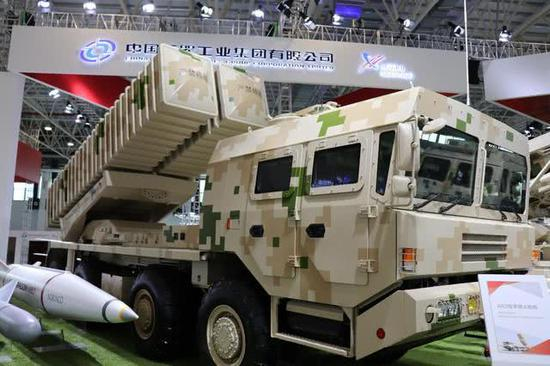 去年珠海航展时的配备了“火龙480”型制导火箭弹(实际就是短程地地战术导弹)的AR3箱式远程火箭炮,而这样的能力,我们推测相信此次阅兵中受阅的新型箱式远程火箭炮也是具备的(图片来源于:摄于:2018。珠海航展)
