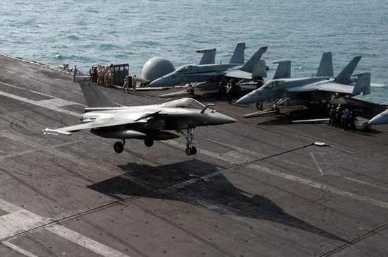 ▲当然,这对于已经习惯了自家航母不在状况内的法国海军航空兵来说不算多大的事儿,他们早已习惯了在美国航母更宽大的甲板上起起落落的感觉